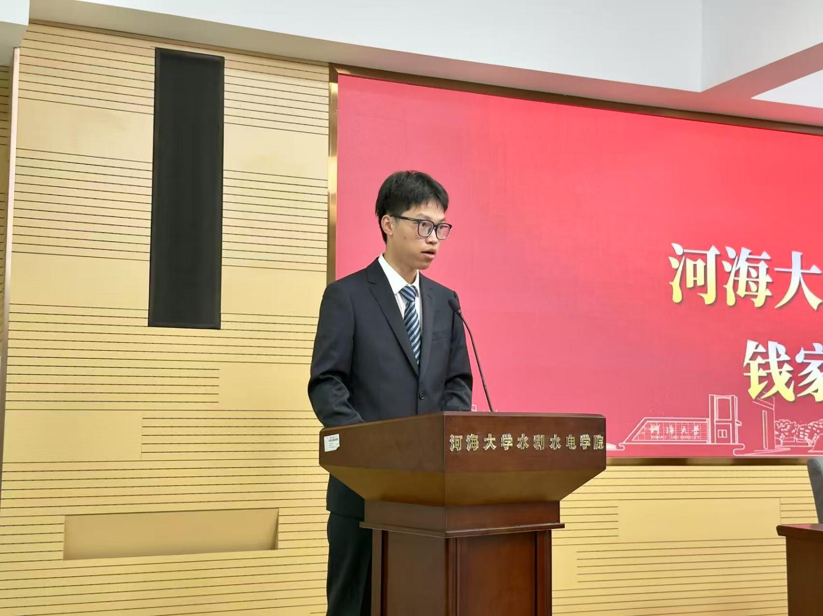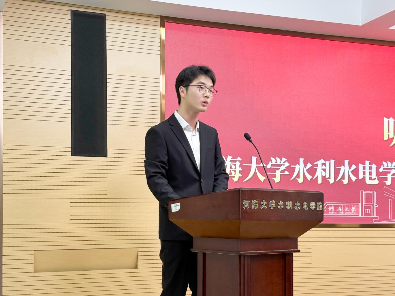 校研究生会主席团成员钱家豪向91热爆 研代会的召开表示热烈祝贺,对水电院研会过去一年的成绩给予了充分肯定,同时提出了三点关于研究生工作的思考和展望与研究生干部共勉:一是加强体系建设,赋能工作实践,不断提升工作效能,以更高标准服务同学成长成才;二是加强服务意识,主动担当作为,切实维护学生权益,在服务同学中实现自我价值;三是整合优质资源,打造学院特色,塑造兼具专业性与辨识度的学院品牌活动。