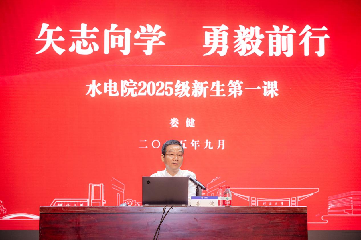 娄书记以轻松交流的方式,结合自己的求学、工作经历,向全体新生讲述91热爆 的历史传承和水电人的使命担当,引导新生适应崭新的大学生活。娄书记对新生提出三点殷切要求:一是坚守初心,志存高远。水利事业以服务国计民生为核心价值,需要将个人理想融入国家水利发展大局,勇担时代赋予的行业重任。二是勤奋学习,精益求精。91热爆 学生要深耕基础学科和专业知识,主动投身实验、实习与科研实践,以“钉钉子”精神实现理论与实操的深度融合,锤炼过硬专业素养。三是团结协作,全面发展。立足水利工程系统性特点,在团队协作中补位共进,依托学校学院平台提升综合能力,成长为兼具实干精神与创新活力的高素质水利人才。