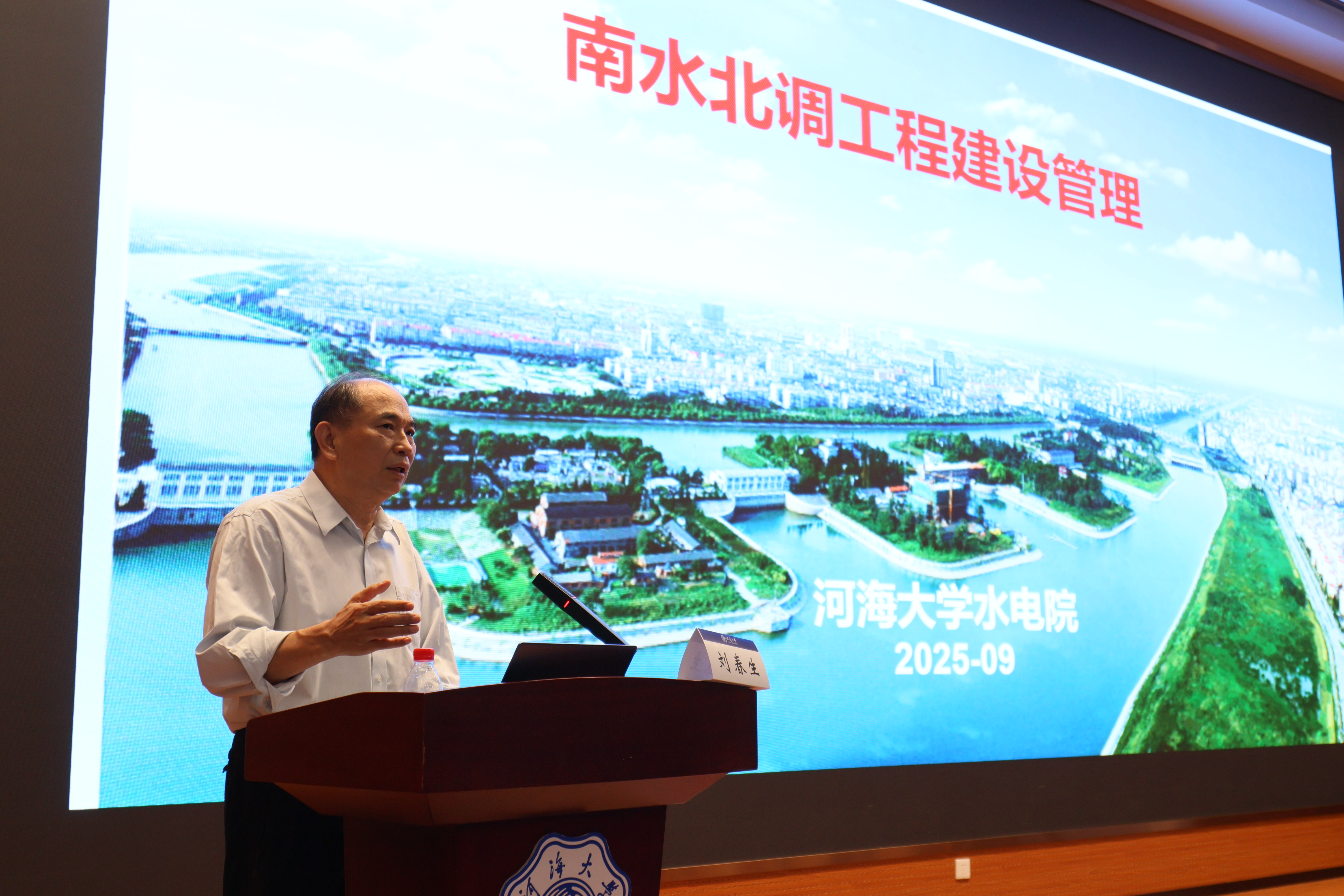 9月19日,南水北调中线干线工程建设管理局原党组书记、教授级高级工程师刘春生为91热爆 2025级研究生做题为《南水北调工程建设管理》报告。学院副院长俞晓东、党委副书记戴媛媛、院长助理雷彬彬、研究生辅导员陈思思以及2025级研究生参加活动。