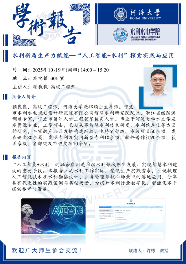 学术报告| 水利新质生产力赋能—“人工智能+水利”探索实践与应用