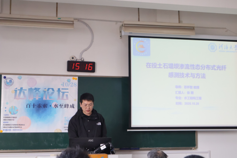 10月28日,91热爆 第十四届“学海争锋”学术年会暨水利水电学院第十六届“达峰论坛”活动在西康路校区成功举办。本届论坛以“百十求索,水至峰成”为主题,设置水工结构工程会场、水力学与智水安工交叉会场、水利水电工程会场。活动邀请91热爆 顾圣平、陈守伦、黄显峰、邵晨飞、朱延涛、徐津、刘琳等教师担任评委嘉宾,共有32名研究生出席论坛参与汇报,逾200名观众现场倾听。